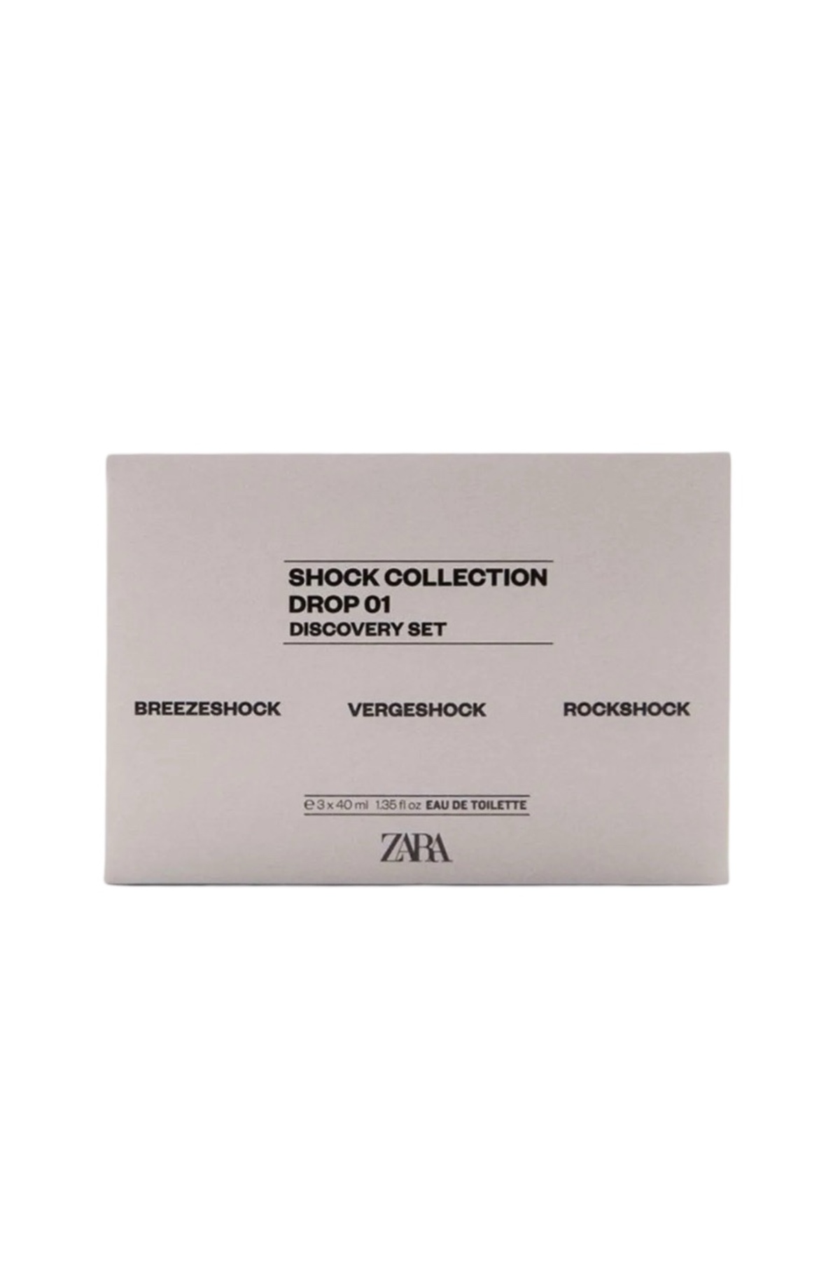 - سه اسانس جدید از مجموعه Shock Collection Drop 01 زارا را کشف کنید؛ ست ادوتویلت مردانه 3×40 میلیلیتر که برای برجسته کردن هویت شخصی شما طراحی شده است.