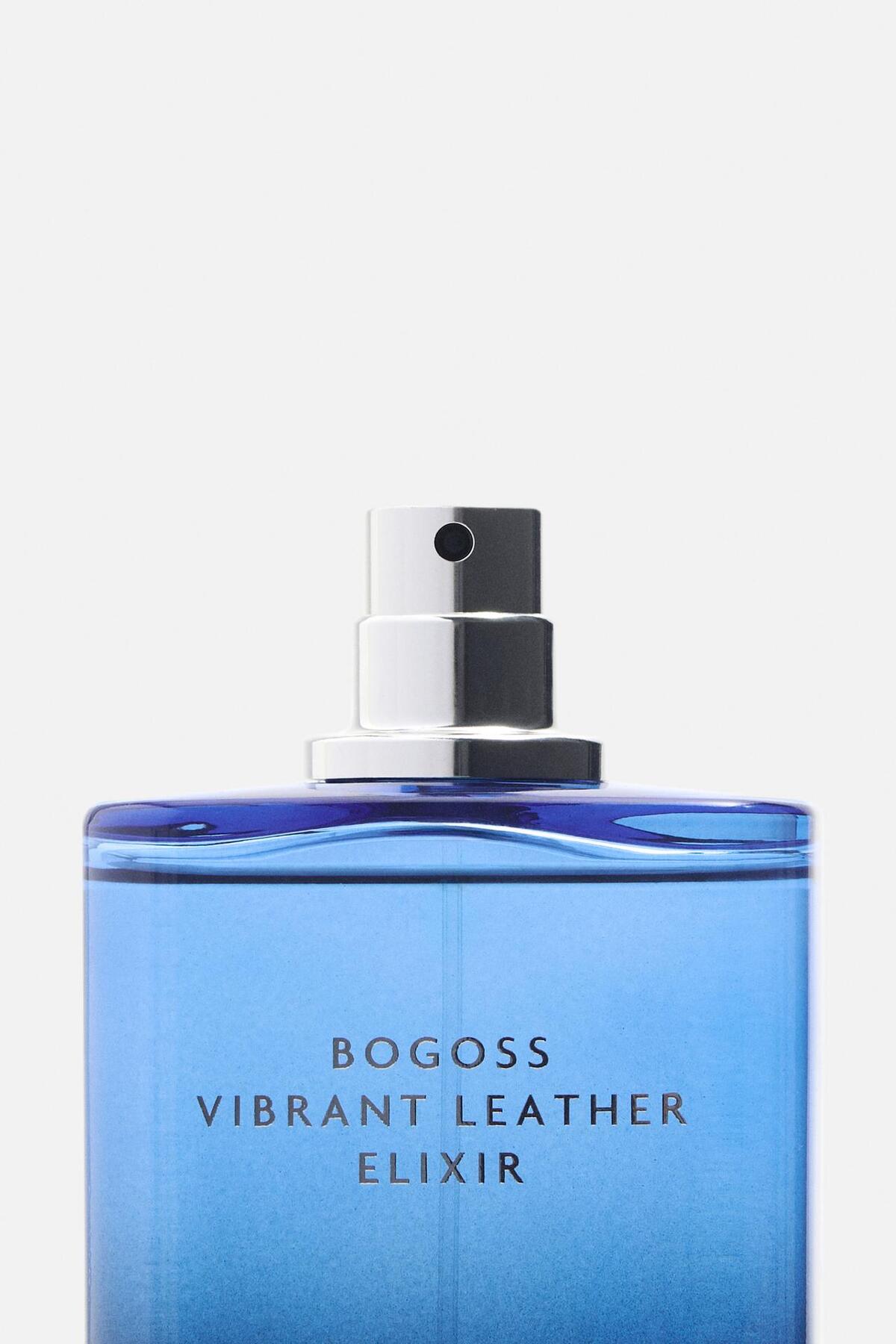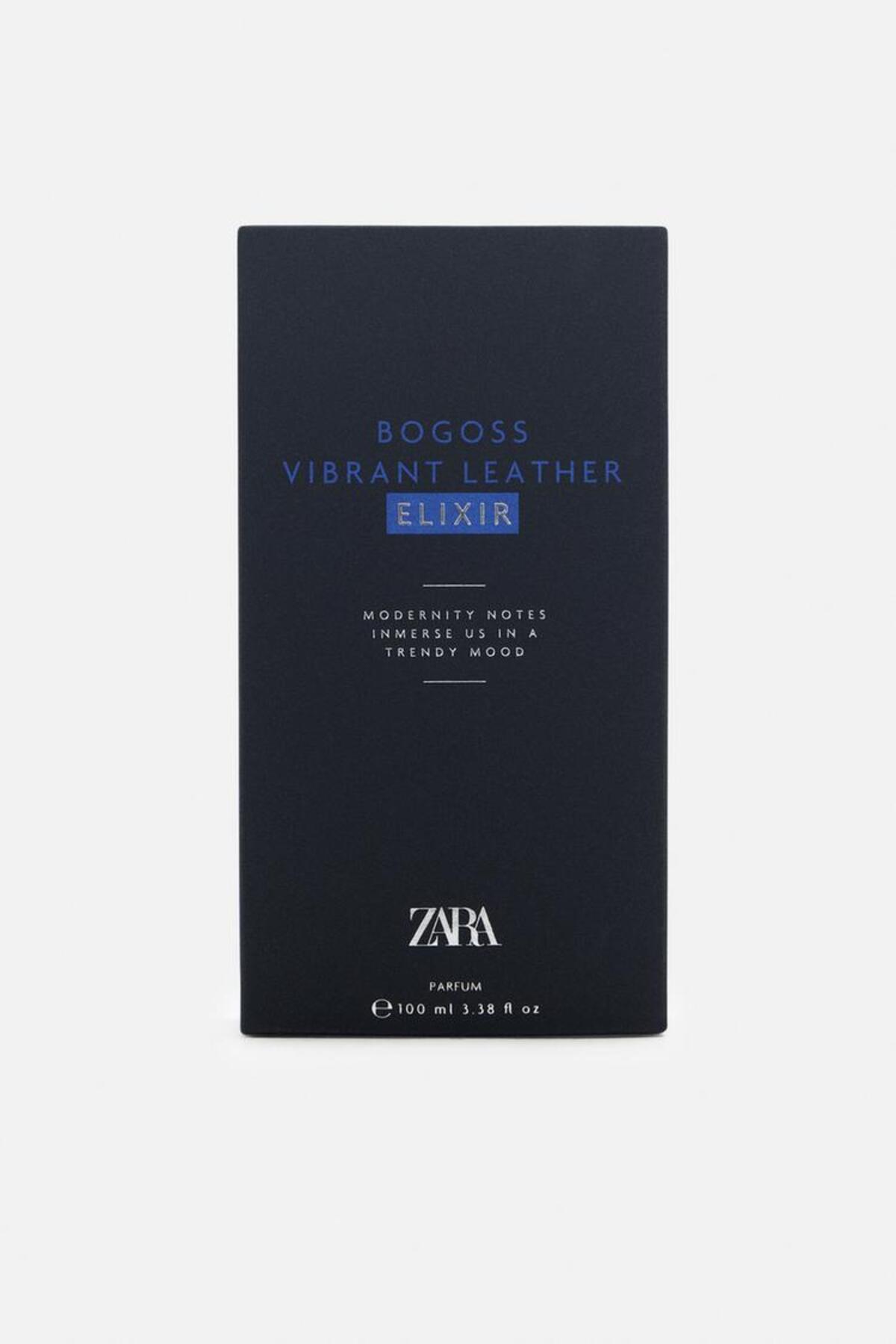 - Bogoss Vibrant Leather Elixir Parfum ۱۰۰ میلیلیتری؛ ادو پرفیوم لوکس از برند Zara با رایحه چرمی-چوبی مدرن.