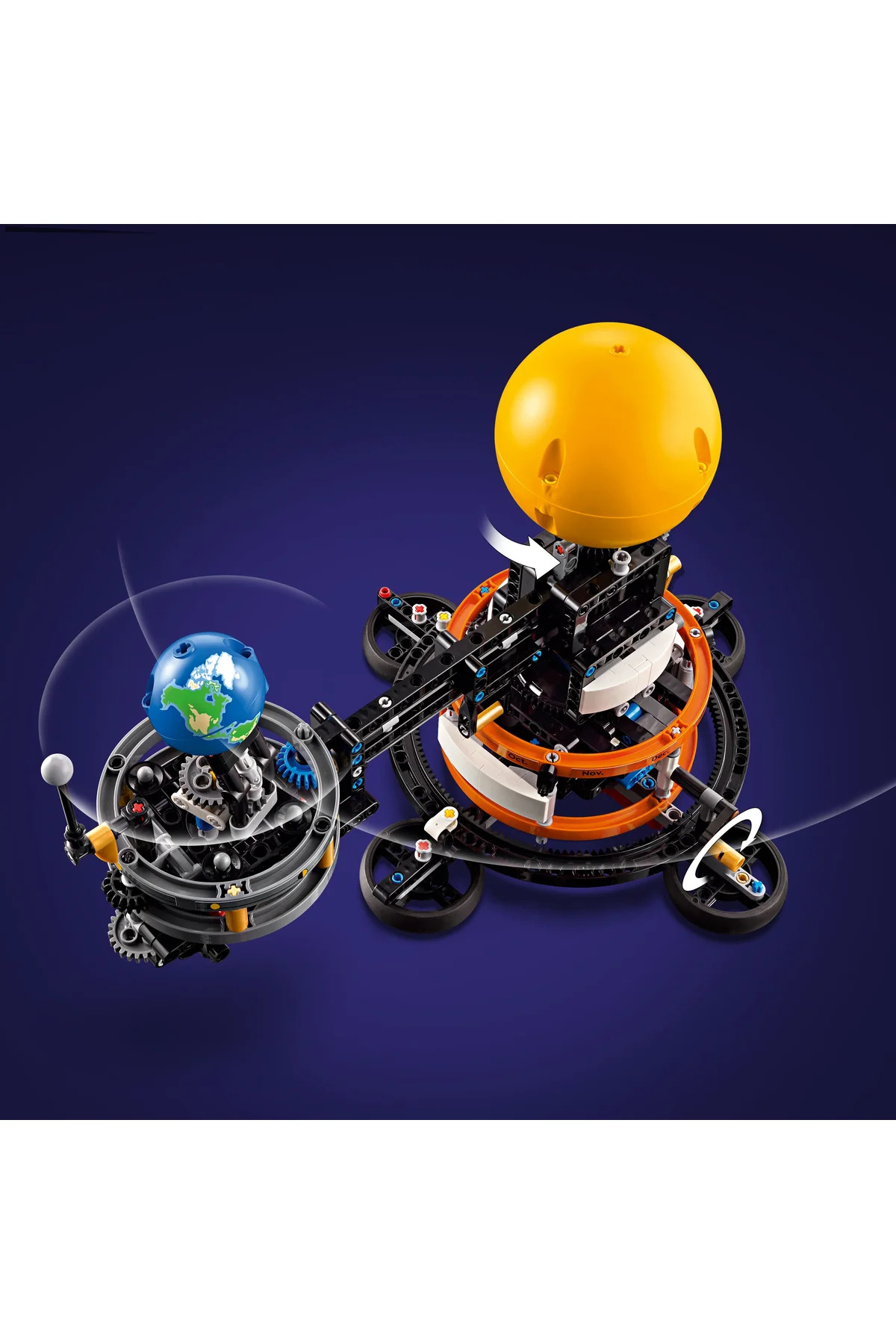- با چرخاندن دسته، حرکتهای مداری واقعی ماه و زمین را دنبال کنید و از مکانیزمهای دقیق و واقعگرایانه مجموعه لذت ببرید.