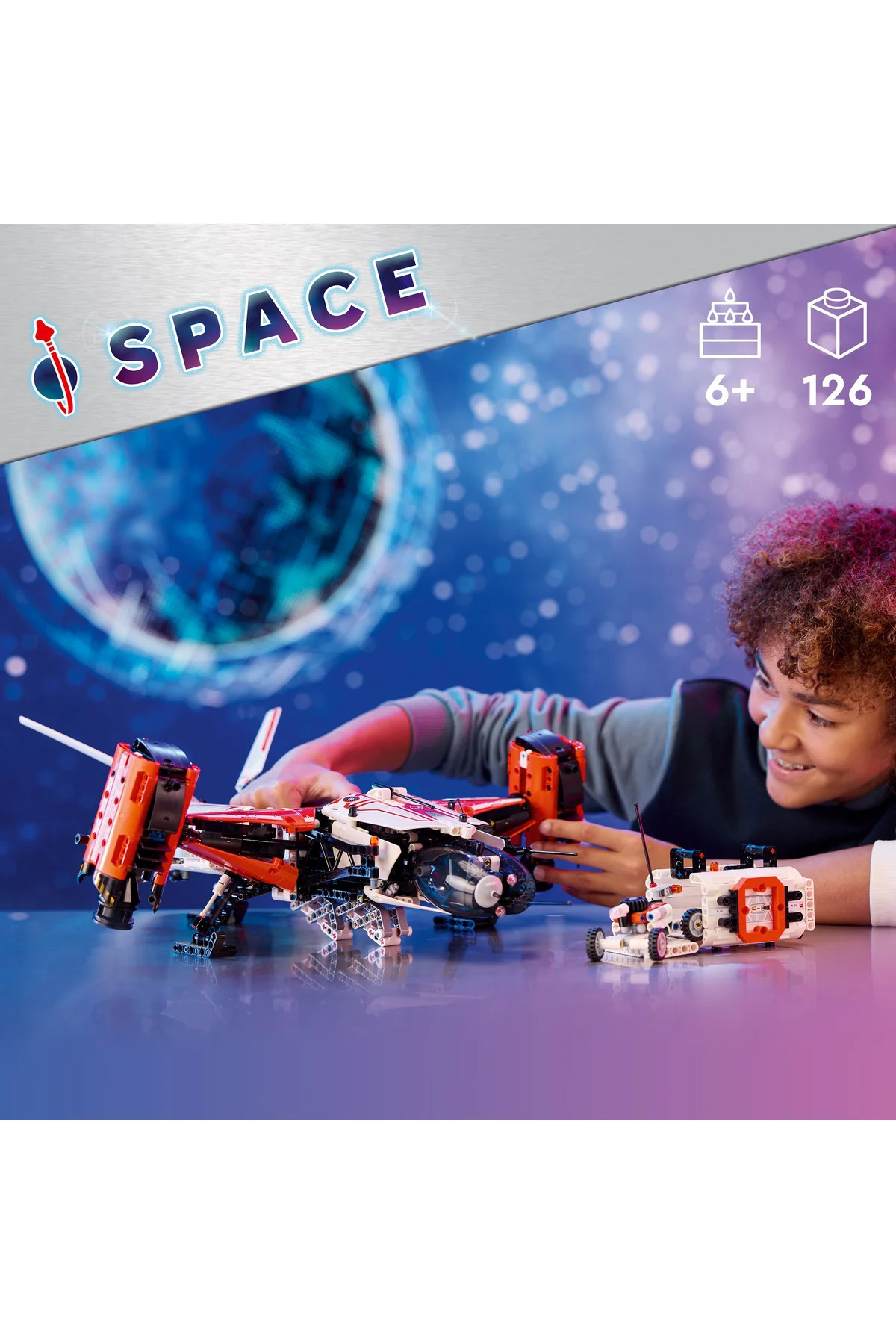 - یک سفینه باربری فضایی آیندهنگر بسازید — علاقهمندان جوان بالای 10 سال هنگام ساخت و بازی با مجموعه LEGO® Technic VTOL LT81 چیزهای زیادی برای کشف خواهند داشت.
