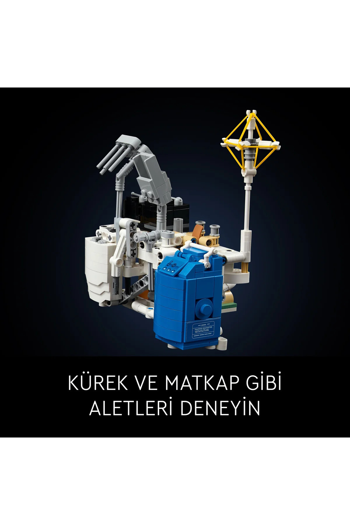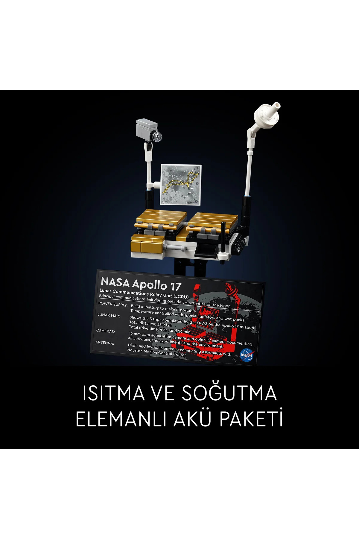 - ست شامل نسخهٔ نمایشی ماژول ماهنورد Apollo و سه مجموعهٔ تجهیزات قابل جدا شدن است. میتوانید محفظهها را باز کنید، تجهیزات را متصل نمائید و فرمان و سیستم تعلیق را برای درک بهتر طراحی فنی آن آزمایش کنید.