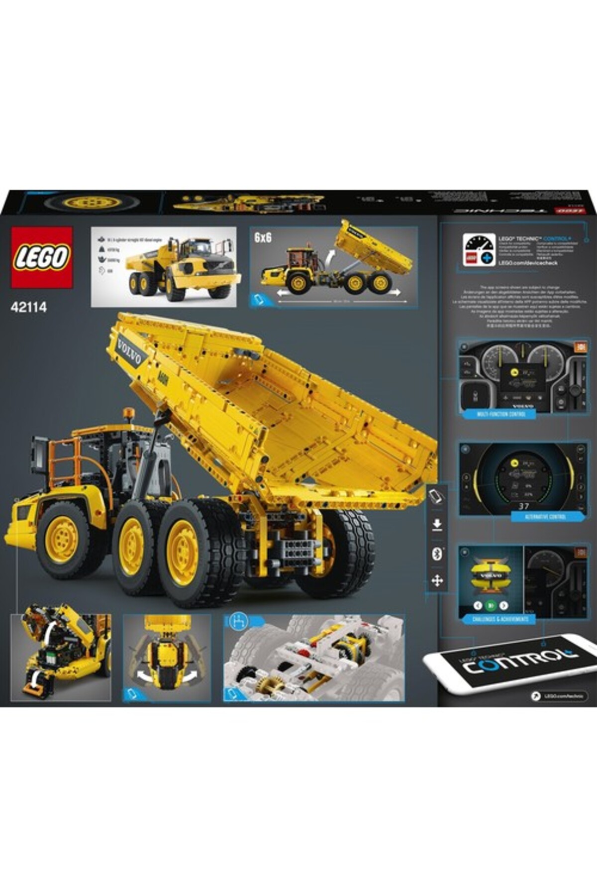 - با این مجموعه ساخت LEGO Technic 6x6 کامیون مفصلی ولوو (42114)، کودکان هنگام چرخاندن فرمان، تخلیه بار و تعویض دنده در اپلیکیشن، با رموز ماشینآلات عظیم ساختمانی آشنا میشوند.