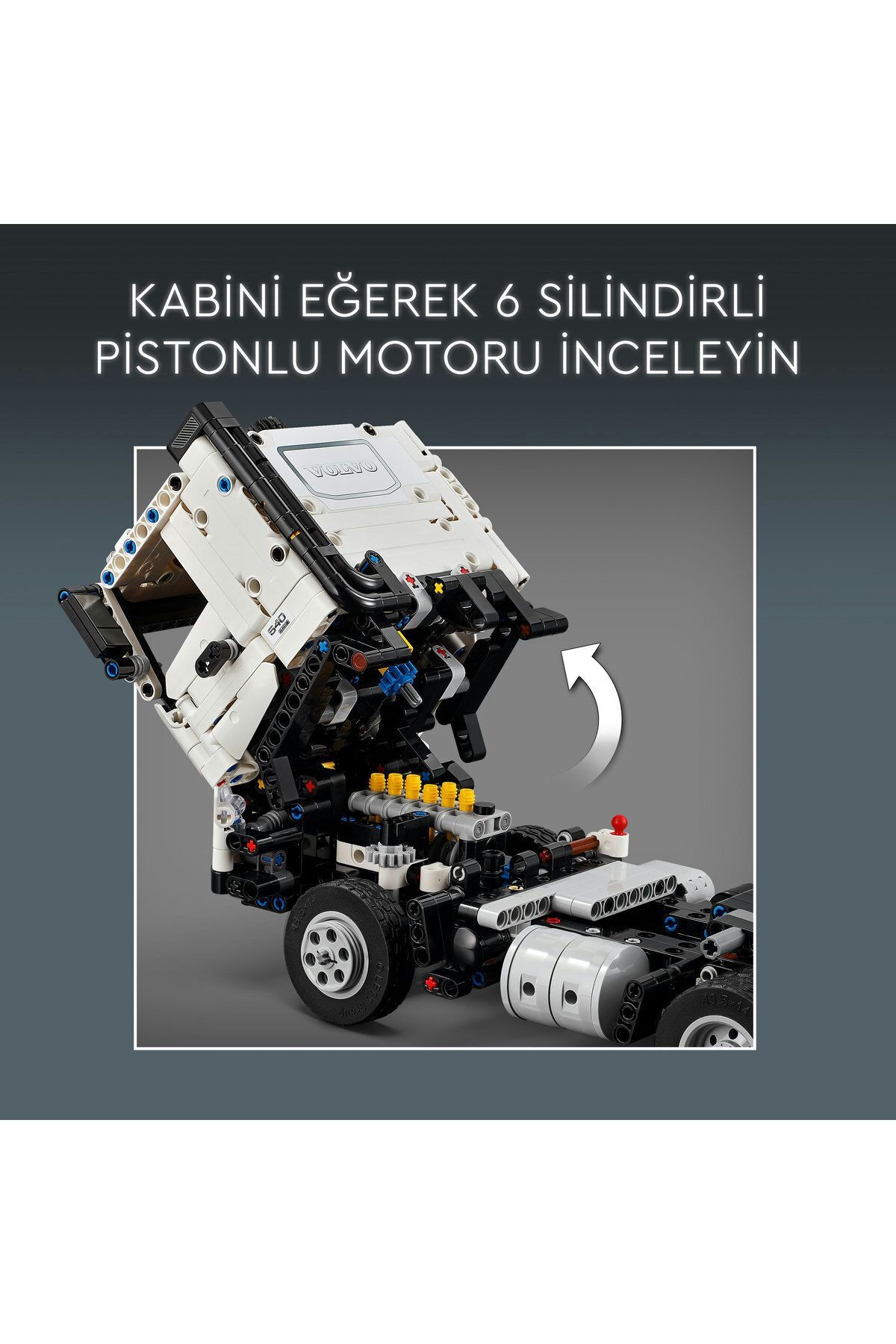 - دوستداران مدلهای کوچک میتوانند درهای کامیون LEGO Technic را باز کنند و با خم کردن کابین اپراتور، موتور 6 سیلندر با پیستونهای متحرک را مشاهده کنند. سپس میتوانند کامیون را حرکت دهند، تریلر را جدا کنند و با باز کردن رمپ، بیل مکانیکی را از تریلر پایین بیاورند.