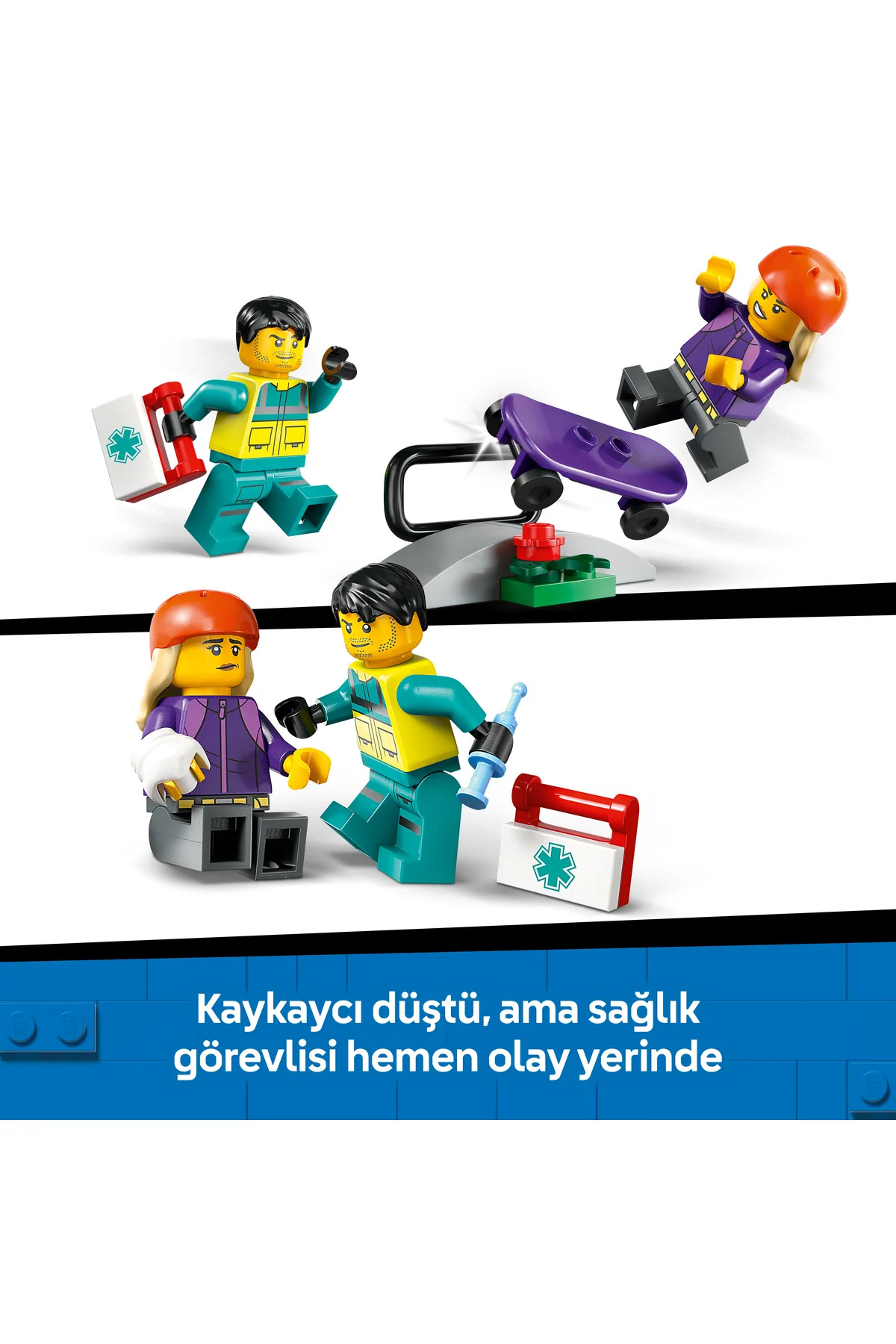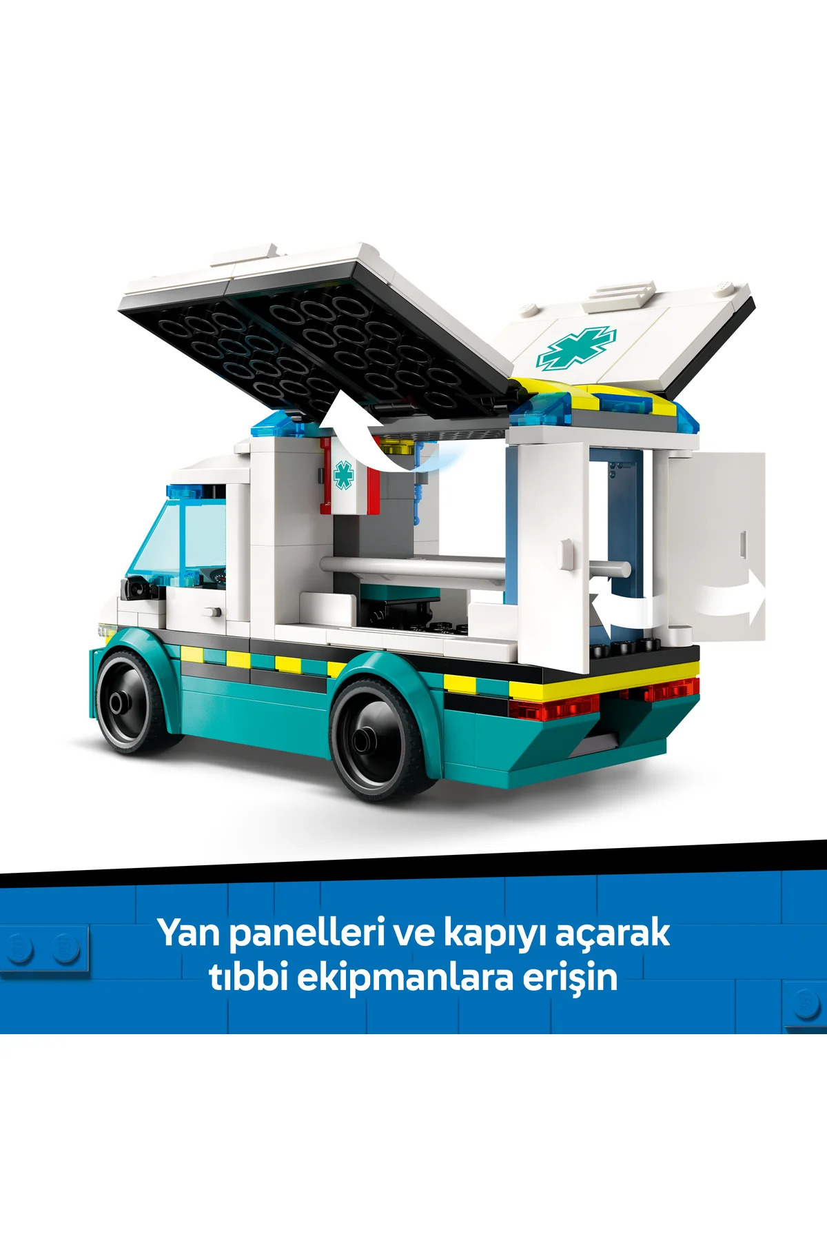 - این مجموعه LEGO City آمبولانس امداد 60451 برای کودکان دختر و پسر 5 سال به بالا طراحی شده و مأموریتهای نجات پر از هیجان را برای آنها فراهم میکند. کودکان با باز کردن پنلهای جانبی و درهای عقب به تخت بیمار و تجهیزات پزشکی اسباببازی مانند سرنگ، باند و کیف کمکهای اولیه دسترسی آسان پیدا میکنند. در این مجموعه علاوه بر وسایل پزشکی، یک اسکیتبورد با رمپ و فیگورهای اسکیتباز و تکنسین فوریتهای پزشکی برای بازیهای نقشآفرینی و روایت داستان وجود دارد.