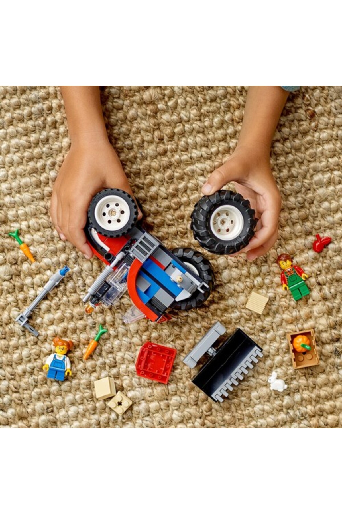 - این مجموعه شامل مینیفیگهای کشاورز و دخترش، فیگور خرگوش، دو کپه یونجه و یک صندوق سبزیجات است — همهچیز برای ماجراهای شاد در مزرعه آماده است.