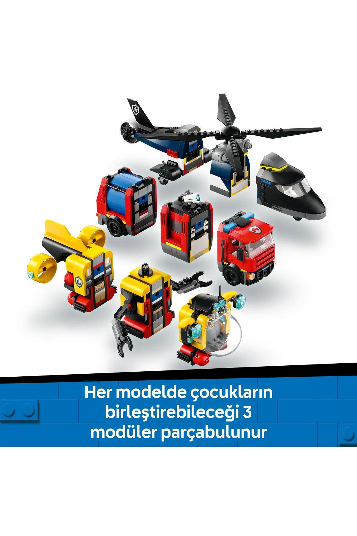 - LEGO City هلیکوپتر، کامیون آتشنشانی و زیردریایی مدل 60462 — تعداد قطعات: 874 — مناسب برای سنین 7 سال به بالا. یک مجموعه ساخت چندمدلی برای بازیهای خلاقانه و آموزشی.