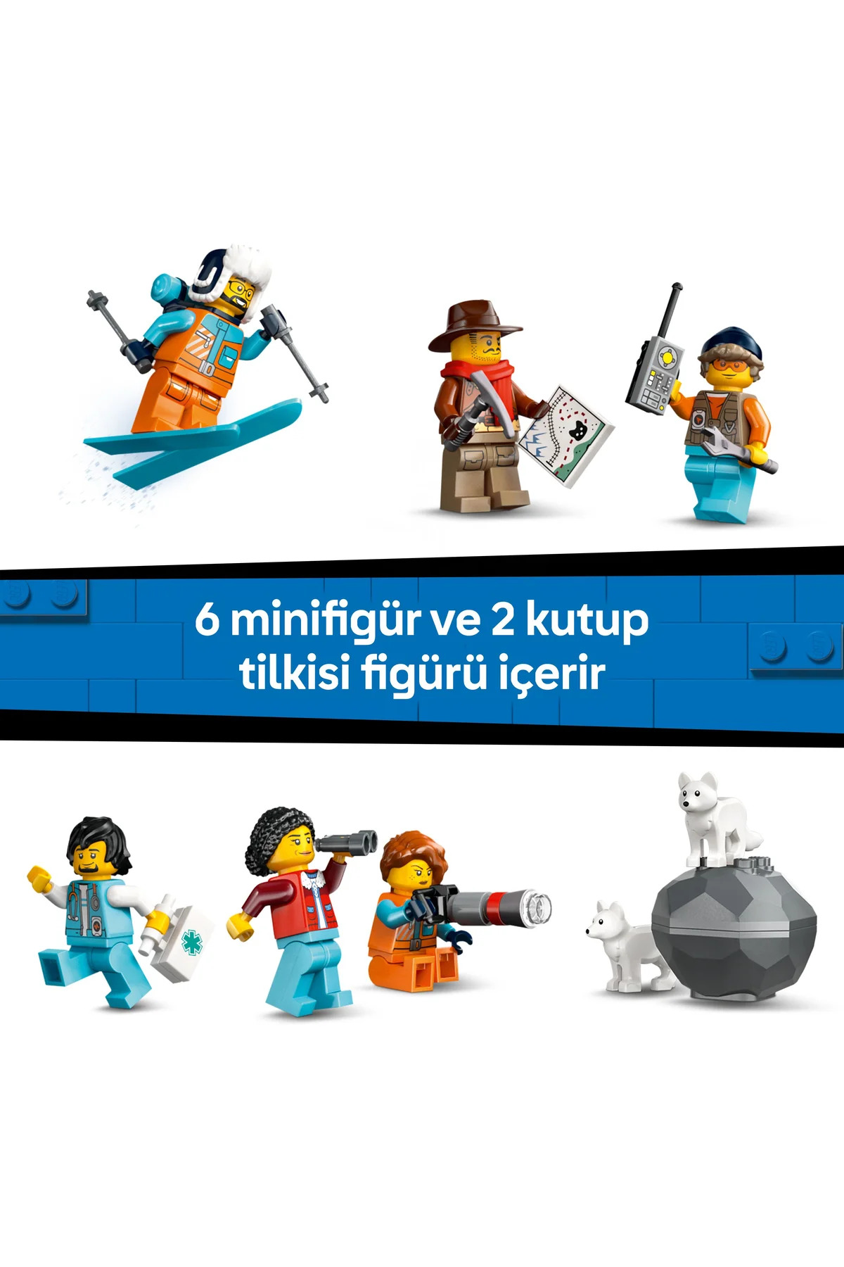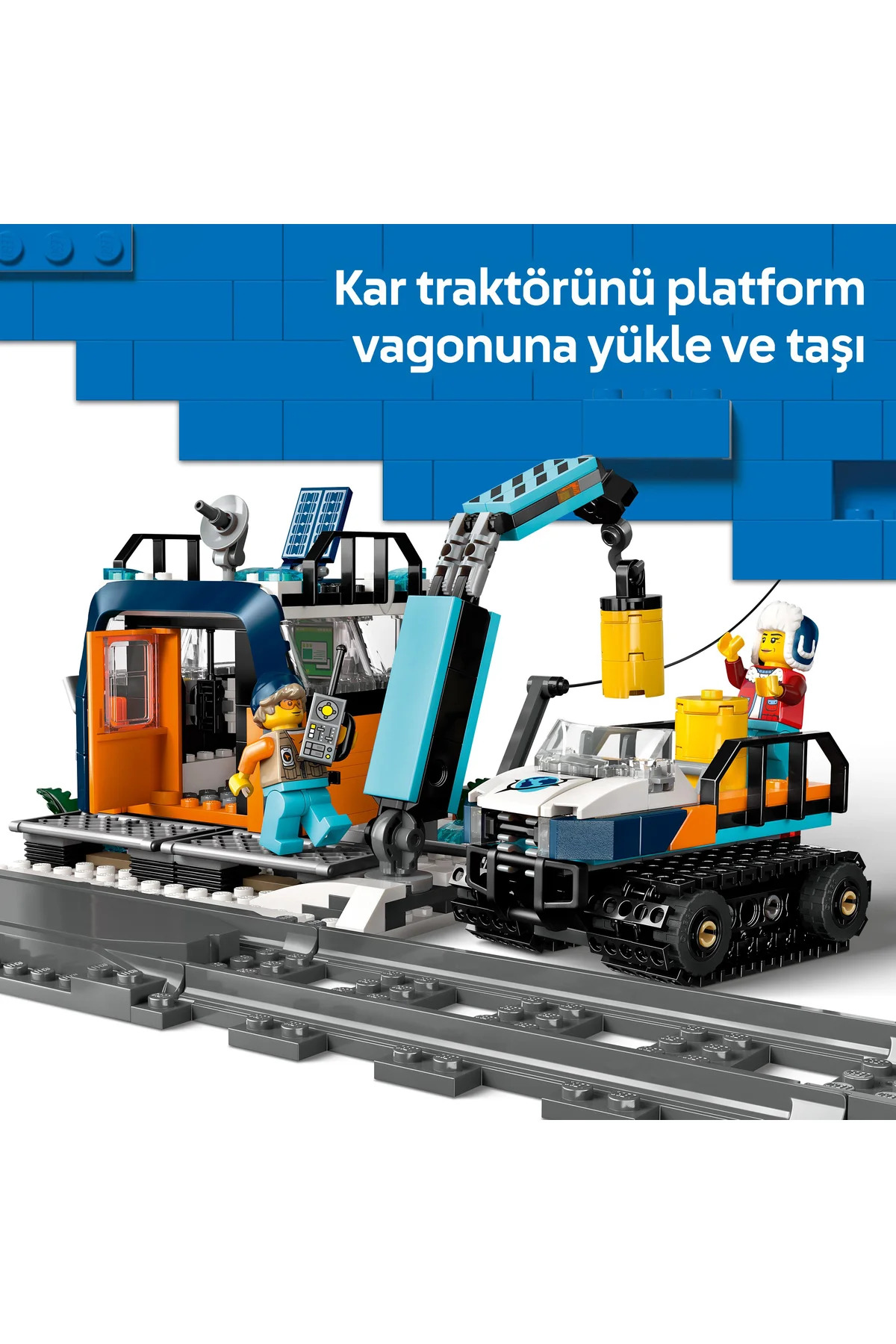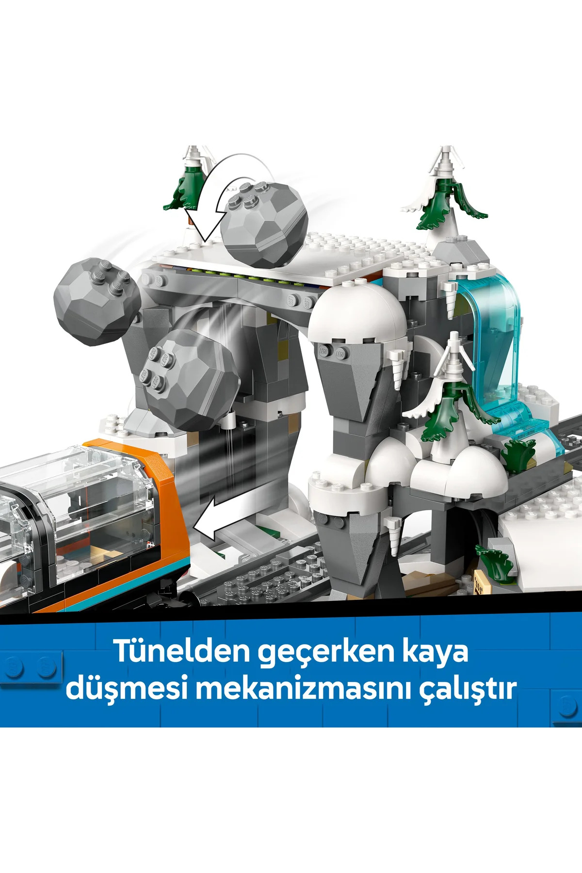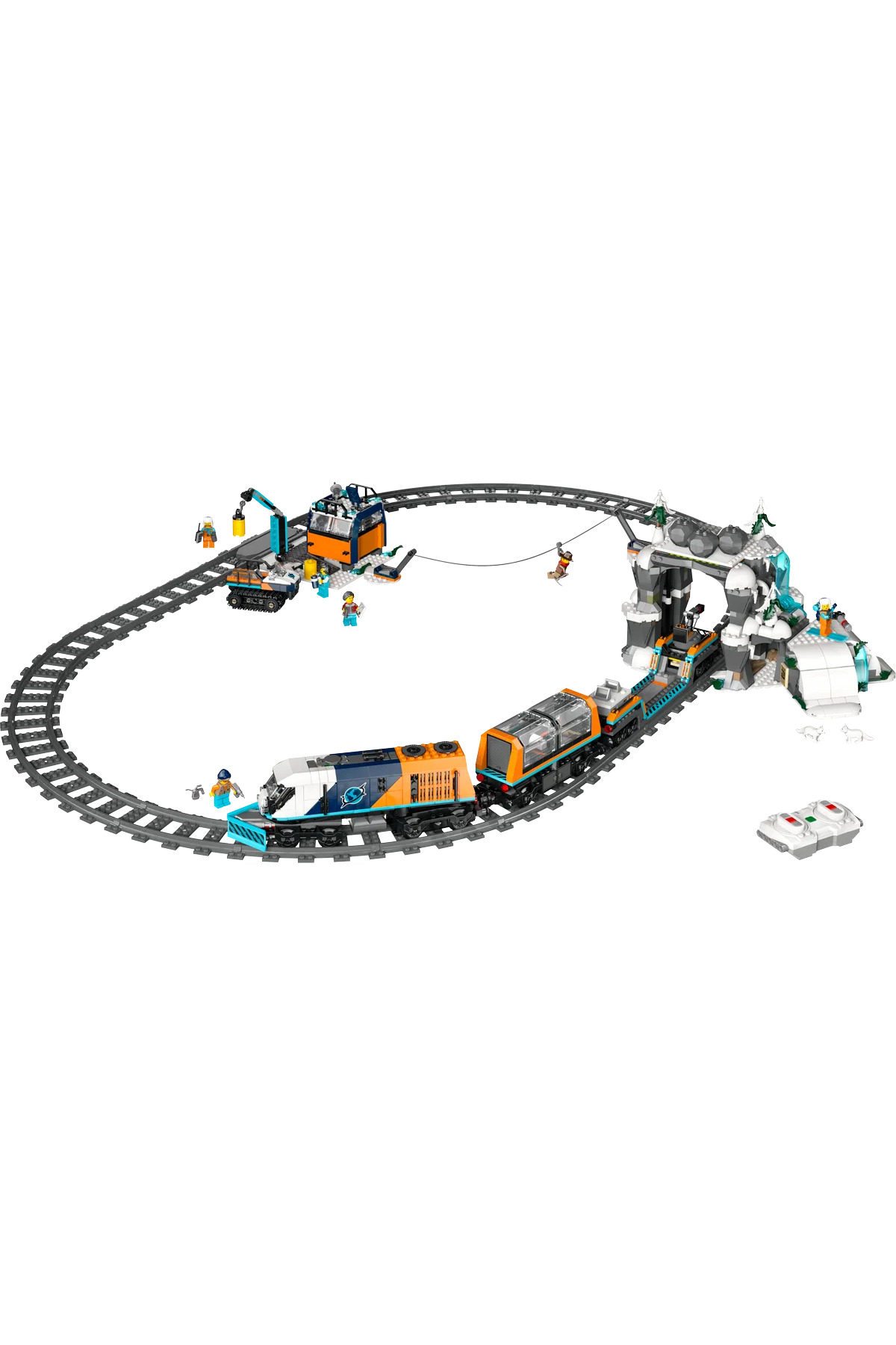 - مجموعه شامل لکوموتیو موتوردار با کنترل از راه دور، واگن برفروب، واگن مسافربری پانورامیک، واگن بار باز، تراکتور برفی، پایگاه اکتشافی، غار معدن، تونل کوه با مکانیزم ریزش سنگ و 22 تکه ریل قطار است. کودکان میتوانند با مینیفیگور افسانهای Johnny Thunder، 5 مینیکاوشگر و 2 فیگور روباه قطبی داستانهای اکتشافی خود را خلق و اجرا کنند.