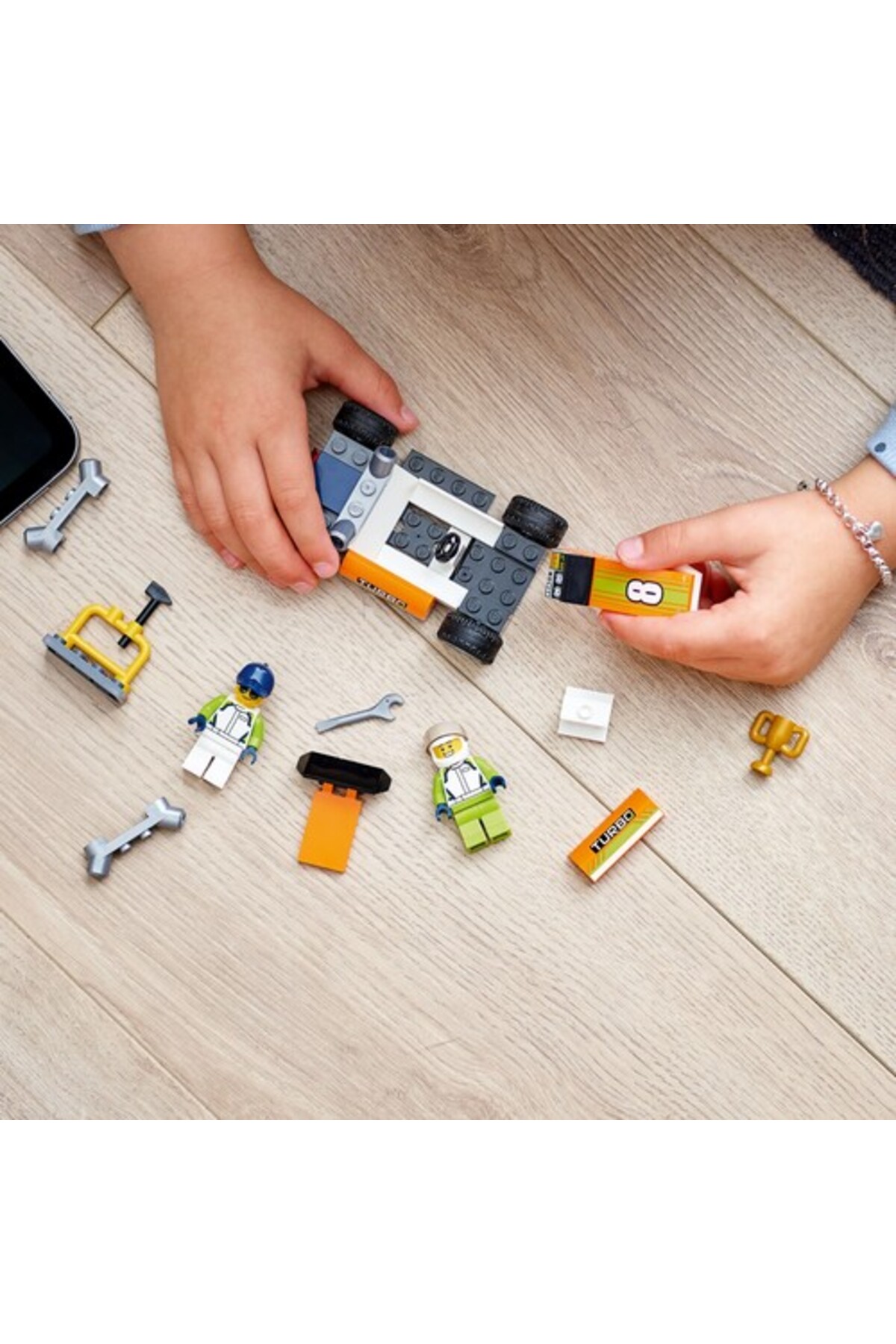 - برای ساعتها ماجراجویی مسابقهای، میتوانید مینیفیگهای مکانیک و راننده مسابقه را به بازی اضافه کنید. مناسب پسران و دختران 4 سال به بالا، این ست شامل دفترچه تصویری راهنمای ساخت و یک قطعه پایه LEGO Starter برای شروع آسان است.