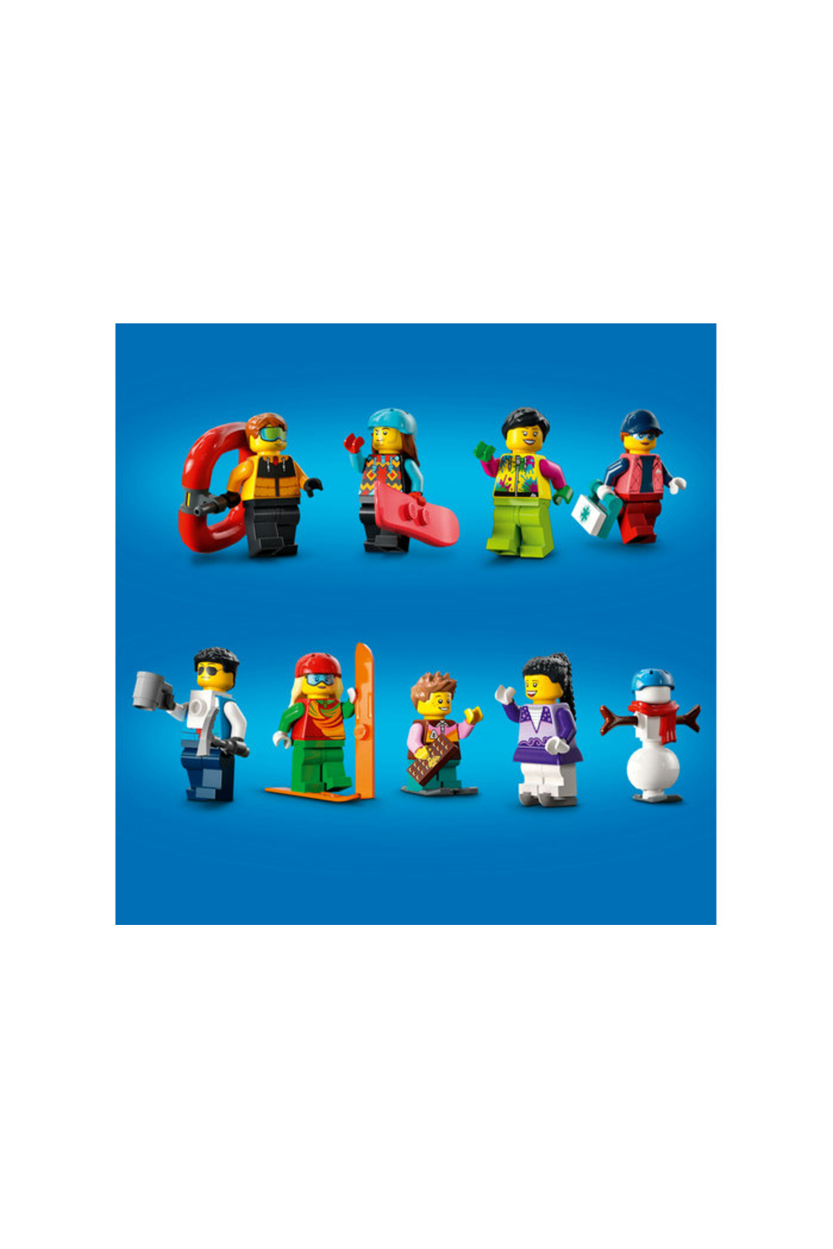 - وسایل جانبی مینیفیگورها: دوچرخه، ست کمکهای اولیه، 2 کولهپشتی، دوربین، 4 اسکی، 2 اسنوبرد، 4 میلهٔ برفی، 2 چوب هاکی روی یخ، 4 کفش اسکیت یخ، 4 کفش برفی و 2 چکش یخشکن و سایر لوازم بازی.