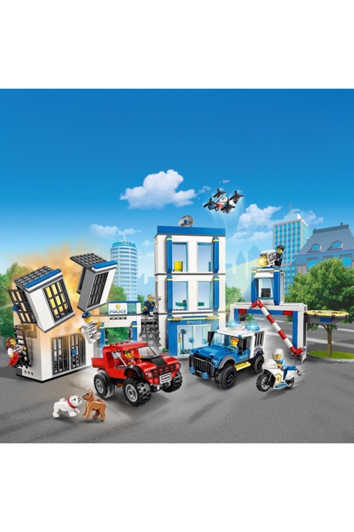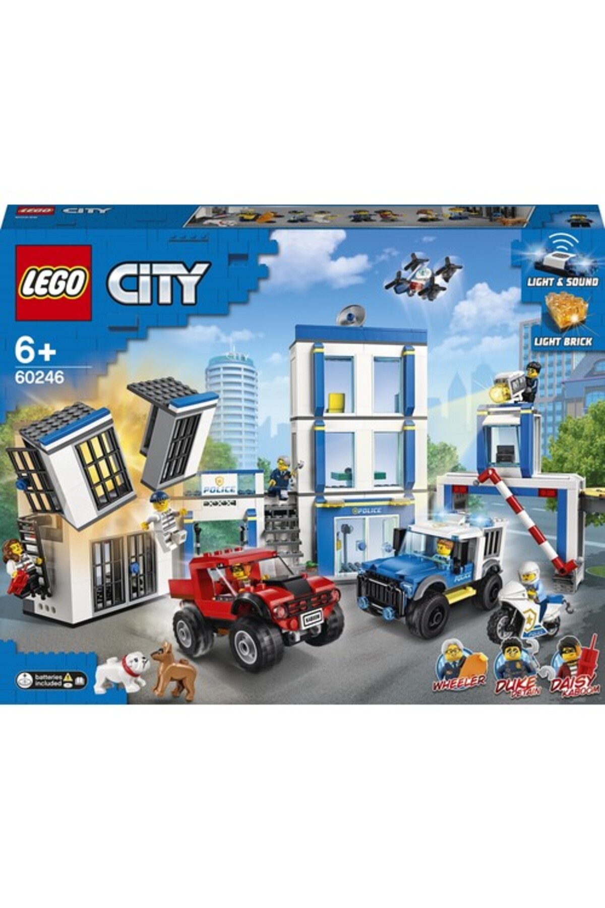 - LEGO City 60246 — بوم! دزد معروف Daisy Kaboom زندان مرکزی LEGO® City را منفجر کرده و همدستانش را آزاد میکند. آنها همراه با یک بولداگ هراسانگیز سوار کامیونهای خود میشوند و با سرعت فرار میکنند. خوشبختانه دوک DeTain، Şeef Wheeler و یک سگ وفادار در محل حضور دارند تا ورود به صحنه را رقم بزنند.