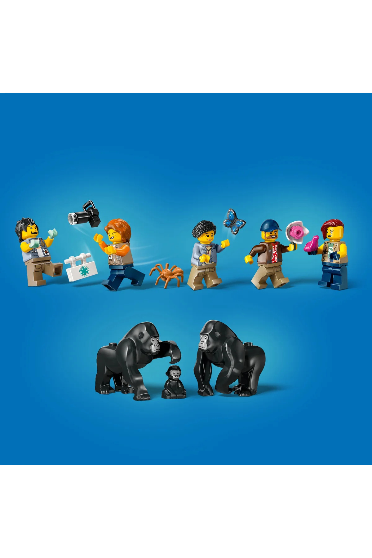 - محتویات و شخصیتها: این مجموعه شامل یک هلیکوپتر با جزئیات متحرک، موتورسیکلت، قایق باتلاقی، کمپ جنگلی و 5 مینیفیگ ماجراجو است. علاوه بر این، 3 فیگور گوریل (از جمله یک بچه گوریل) برای بازیهای داستانی و تعامل با محیط در بسته قرار دارند.