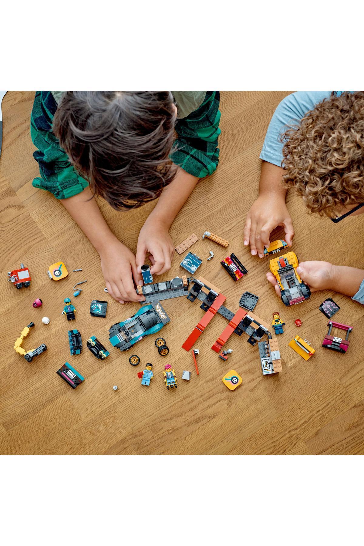 - با این ست بازی LEGO® City کارگاه تیونینگ خودرو (60389) که دارای دو ماشین اسباببازی و امکانات فراوان است، تیونینگ خودروها تبدیل به سرگرمی کودکانه میشود. کودکان میتوانند از میان قطعات مدولار جلو و عقب با موتورهای مختلف و چراغها، سپرها و بالههای متنوع انتخاب کنند و طراحیهای خود را بسازند. همراه با لوازم جانبی جذاب، دو تعمیرکار و دو راننده مینیفیگ دارد. دستورالعملهای تعاملی لذت ساخت را بیشتر میکنند. این ست همراه با راهنمای تصویری آسان و اپلیکیشن LEGO Builder که دارای ابزارهای بزرگنمایی و چرخش تعاملی برای دیدن مدل از تمام زوایاست عرضه میشود. مجموعه LEGO City الهامبخش بازیهای خلاقانه با مدلهای واقعی و شخصیتهای سرگرمکننده است که به کودکان امکان کشف نزدیک انواع وسایل نقلیه را میدهد.