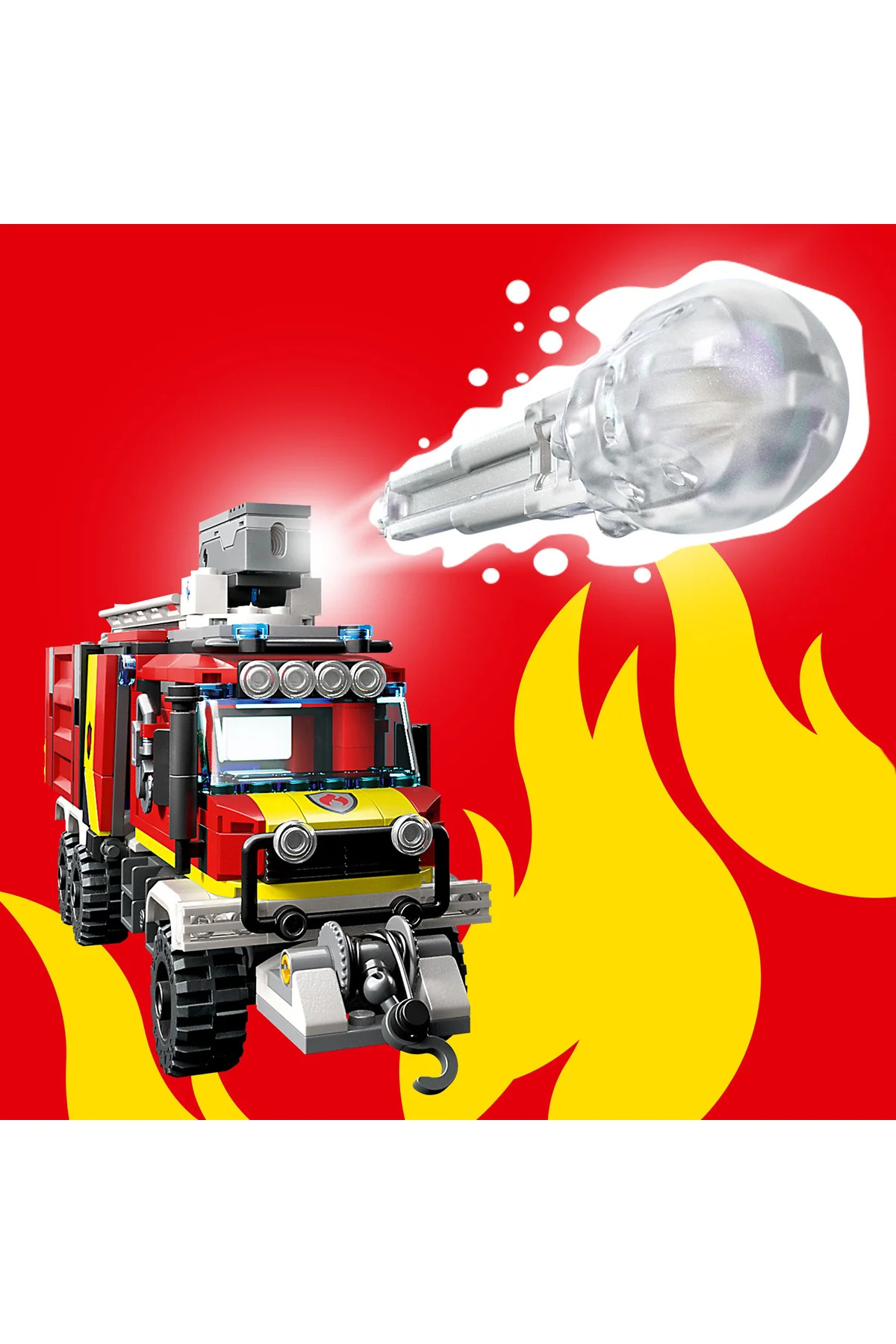 - ویژگیها و قطعات کلیدی: این ست شامل کامیون فرماندهی با مرکز کنترل جداشدنی، پهپاد (سازمانیافته برای عملیات هوایی)، یک وسیله نقلیه زمینی و 3 مینیفیگ است. قطعات طراحیشده امکان شبیهسازی شلیک آب و فوم را برای تمرین عملیات خاموشسازی فراهم میکنند.