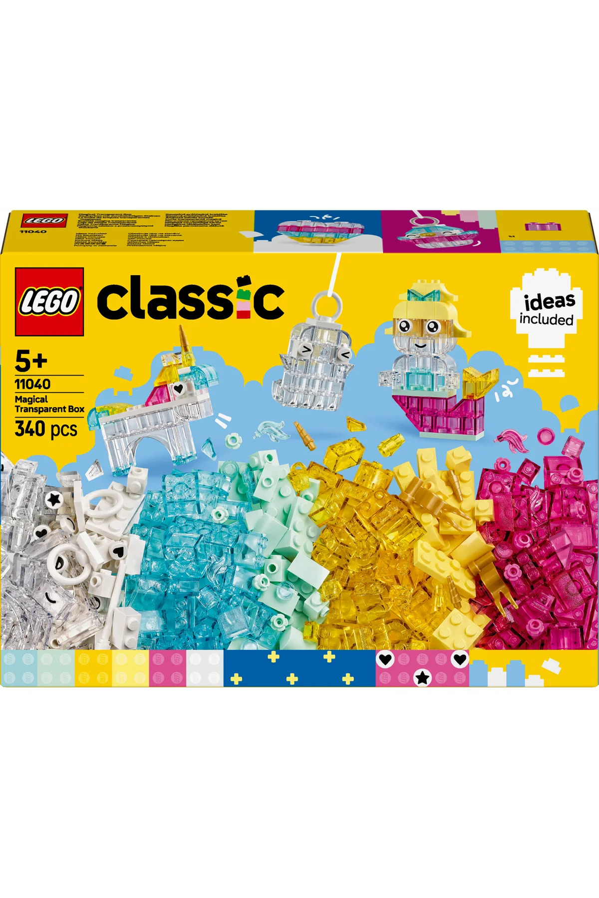 LEGO Classic Magic Transparent Box 11040 — 340-Piece Creative Building Set for Ages 5+